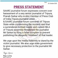त्रिपुराका वरिष्ठ पत्रकारमाथि दुर्व्यवहारप्रति सार्क पत्रकार फोरमको आपत्ति