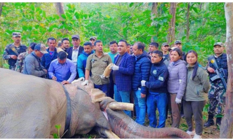 ध्रुवे ’ हात्तीमा रेडियोकलर मेसिन जडान गरेसँगै हात्तीको दाह्रा पनि काटिएको छ ।