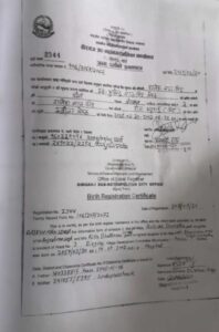 मेयर सिहले वीरगंज उपमहानगरपालिका कार्यालय,वीरगंज पर्साको दर्ता नम्बर २३४४ राखेर पारिवारिक लागत फारम नं.१०६/२०७१/२०७२ बाट जन्म दर्ताको प्रमाणपत्र तयार गरेका थिए । जन्म दर्ताको प्रमाणपत्रमा स्थानीय पञ्जिकरणको किर्ते हस्ताक्षर मात्र नभई बुवा भनिएको राजेशमान सिंहको नागरिकता नम्बर र आमा भनिएको रिता भट्टराईको नागरिकता नम्बर समेत गलत उल्लेख गरिएको पाइएको छ ।