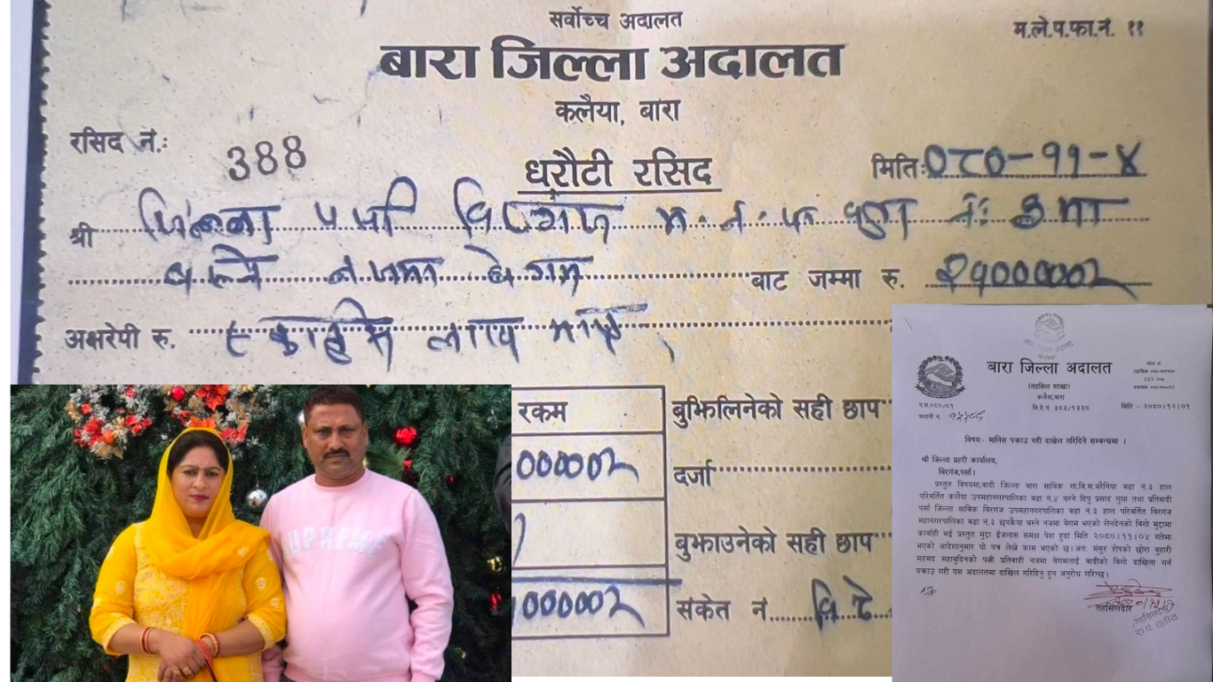 जिल्ला बारा कलैया उप महानगर पालिका ०३ निवासी दिपु प्रसाद गुप्ताले बिरगन्ज ३ निवासी महम्मद सहाबुदिनको श्रीमति नजमा बेगमको विरुद्ध जिल्ला अदालत बारामा लेनदेन सम्बन्धी मुद्दा हालेका थिए । सो मुद्दामा प्रतिबादि नजमा बेगमले अदालतको आदेश बमोजिम मिति २०८०/११/०४ गते २१लाख धराैटि वापत रकम जम्मा गरेकि थिइन तर याहा अदालत समेतलाई गुम्राह गरेर मिति २०/१२ /०१ मा विपक्षीले नजमा बेगमको नाममा पक्राउ पुर्जी जारी गर्न लगायो । पक्राउ पुर्जी लिएर प्रहरी नजमाको घरमा पुग्दा नजमाले आफुले अदालतको बिगो अनुसार धरौटी बुझाएको पुर्जी देखाएपछि प्रहरी खालिहात फर्कन परेको थियो । विपक्षका मनिसहरु नजमालाइ प्रहरीले पक्राउ गर्छ भनेर घर अगाडी क्यामेरा सोझ्याएर बसेका थिए जब प्रहरी खालिहात फर्कियो त्यसपछि उनिहरु मैदान छोडेर भग्नु पर्यो । मुख्य बिषय भनेको महम्मद सहाबुदिन लगायतका ब्यक्तिहरुले बिरगंज महानगर पालिकाका मेयर राजेशमान सिह विरुद्ध सरकारी कागज किर्ते गरि अर्काको छोरिलाइ आफ्नो छोरी भनेर नागरिकता दिलाएको मुद्दा जिल्ला प्रशासन , जिल्ला प्रहरी , अख्तियर ,गृहमन्त्रालय ,प्रधानमन्त्रीको कार्यालय , निर्वाचन आयोग र सतर्कता केन्द्रमा समेत कार्वाहीको माग गर्दै मुद्दा हालेका छन सोही मुद्दा वापत दुस्मनि साध्नको लागी मेयर सिहले अदालत समेतलाइ गुम्राह गरेर निर्दोष र छलकपट सङ्ग कुनै सरोकार नभएको श्रीमती नजमा बेगमलाइ फसाउने प्रयास गरेका थिए र असफल पनि भए। लेनदेन मुद्दामा फसाउन खोजेपनि सफल भने हुन सकेनन् किर्ते गरेकाे आराेप लागेका वीरगंज महानगरका मेयर सिह ।