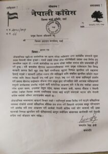 नेपाली काग्रेस पर्साले पर्साका प्रमुख जिल्ला अधिकारी समक्ष ज्ञापनपत्र बुझाएर बीरगंज महानगर पालिकाका मेयर राजेशमान सिहको किर्ते कागज र नागरिकता मुद्दामा कार्वाही गर्न र शुक्रबारको घटनाको छानबिन गरि दाेषीलाई कानुनी कटघरामा ल्याउन माग गरेको छ ।
