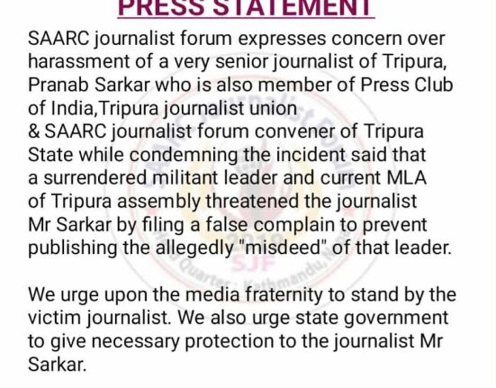 त्रिपुराका वरिष्ठ पत्रकारमाथि दुर्व्यवहारप्रति सार्क पत्रकार फोरमको आपत्ति