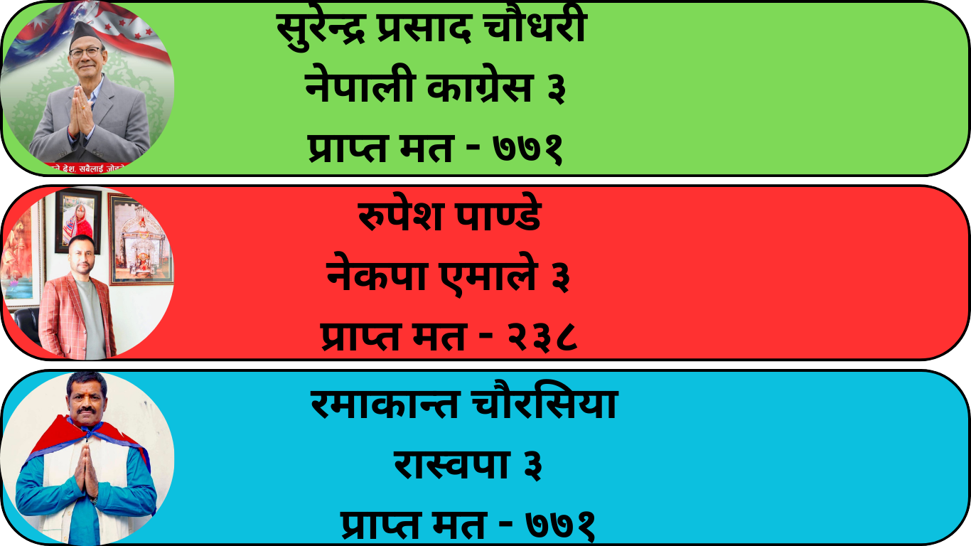 पर्साका ४ वटै क्षेत्रमा रास्वपा अगाडि, कांग्रेस–एमाले पछि
