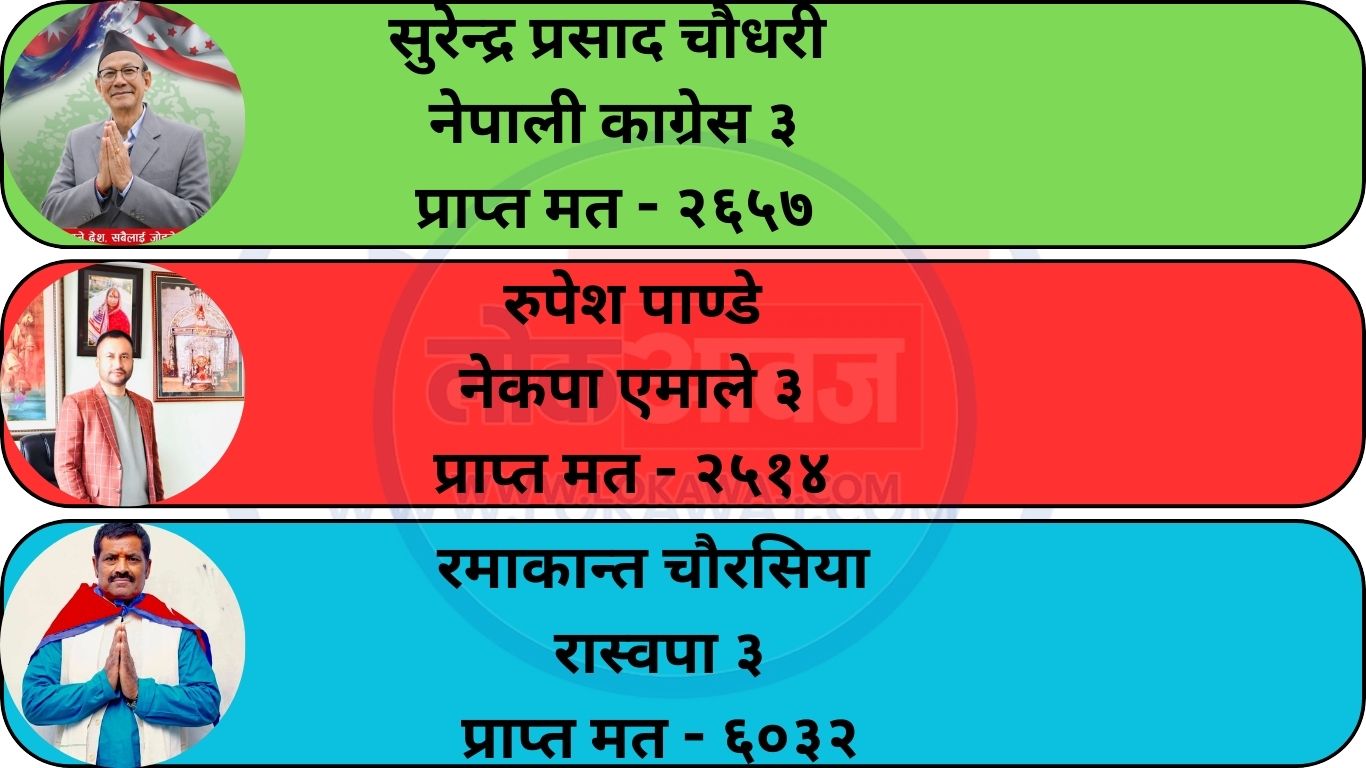 यदि यही रुझान अन्तिमसम्म कायम रह्यो भने पर्साका चारै निर्वाचन क्षेत्रमा राष्ट्रिय स्वतन्त्र पार्टीले जित सुनिश्चित गर्ने सम्भावना बलियो देखिएको छ। मतगणना अझै जारी रहेकाले अन्तिम परिणाम आउन भने केही समय लाग्ने बताइएको छ।
