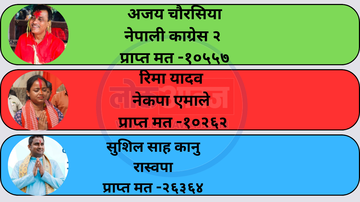 त्यसैगरी पर्सा क्षेत्र नम्बर २ मा रास्वपाका सुशील साह कानुले २६ हजार ३६४ मतसहित आफ्नो अग्रता कायम राखेका छन्। उनका निकटतम प्रतिस्पर्धी नेपाली कांग्रेसका अजय चौरसियाले १० हजार ५५७ मत प्राप्त गरेका छन् भने नेकपा एमालेकी रिमा यादवले १० हजार २६५ मत ल्याउँदै तेस्रो स्थानमा रहेकी छन्।